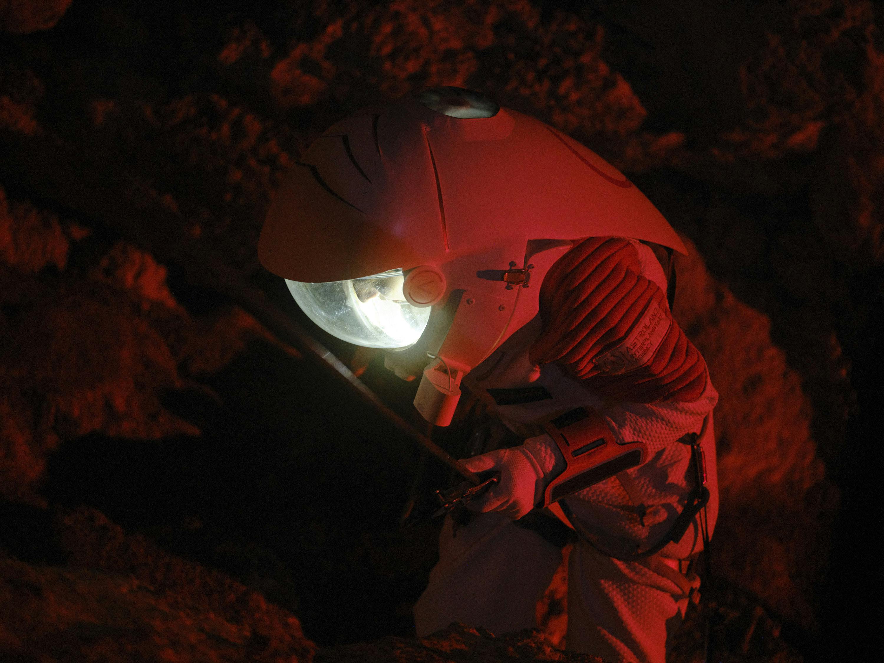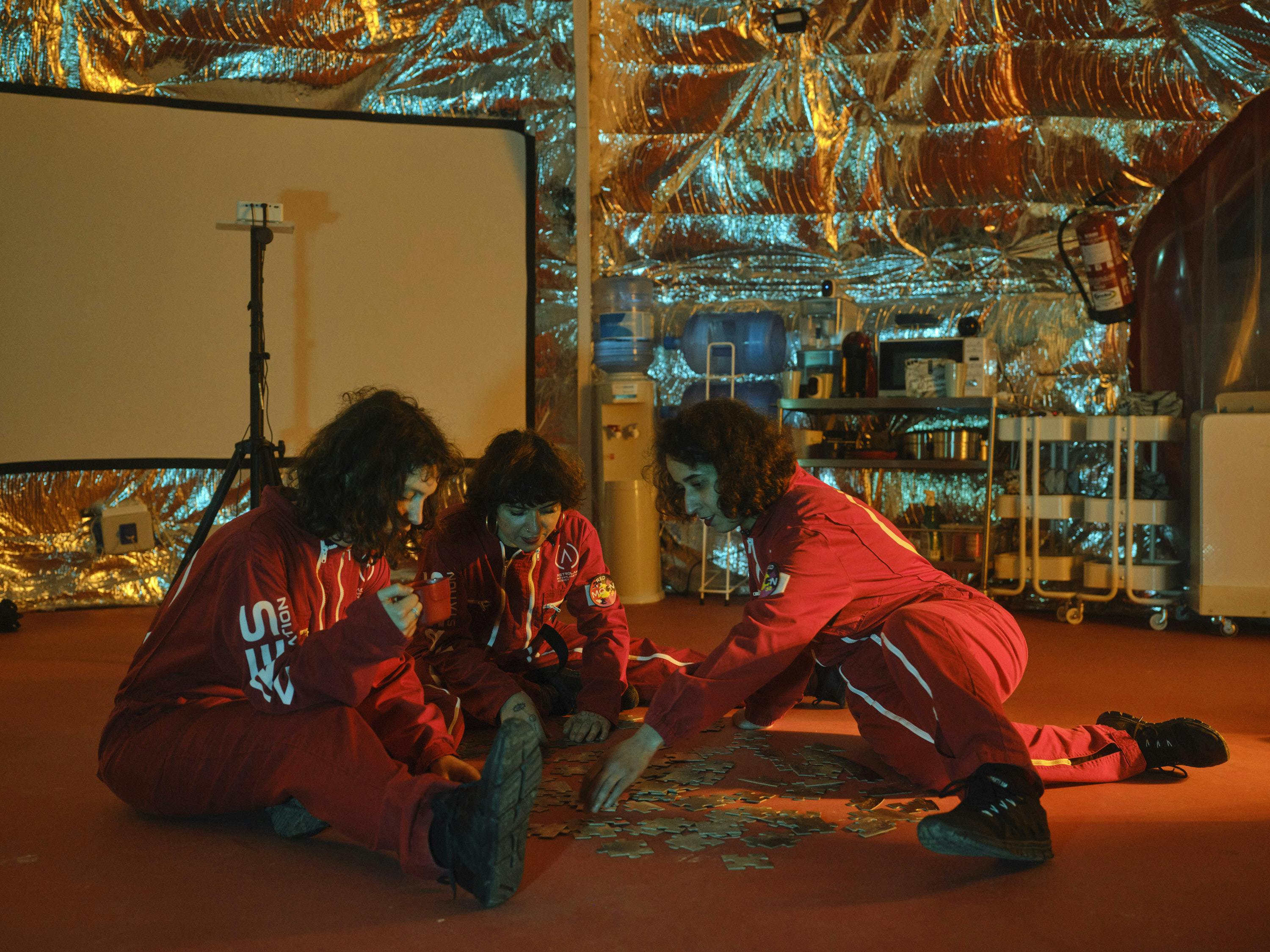 Through role-play, quantum physics, and encounters with an extensive range of scientists, visionaries and cultural inventors, Doppelgängers3 experiments with new templates for a future diaspora beyond Earth. How will human inhabitants of the Moon from Algeria and Armenia understand origin, borders and nations? Who will have rights? Who will decide? To prepare for a new utopian moon society, we go as close to the Moon possible on Earth – a deep cave in Spain where astronauts are trained to live in close quarters and to explore the unpredictable and the unknown. This film is an actuality drama that uses forthcoming events as a starting point to create speculative futures. However, we begin with historic origins and set the film in the present. It is reflective and, in parts, autobiographical, addressing some of the collective traumas that my family and many others have gone through while engaging in durational role-play and queer ecofeminist theories.